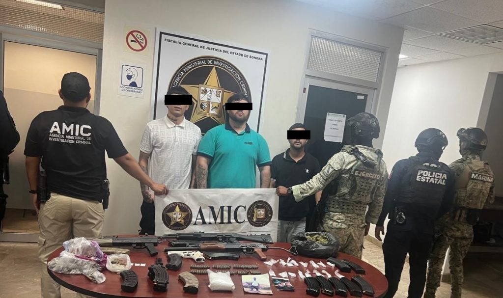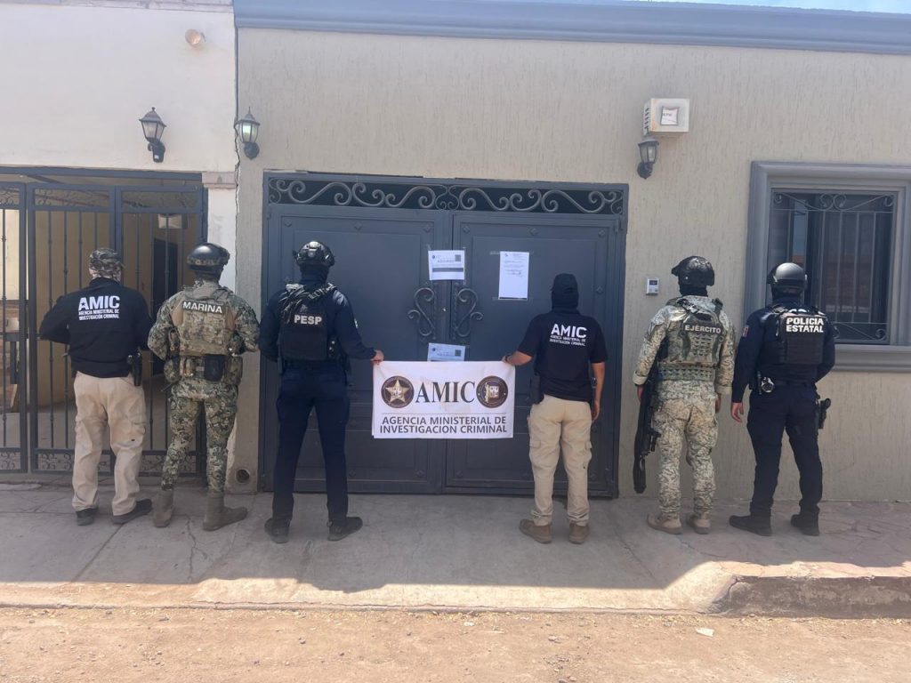 Cajeme, Sonora, 23 de abril de 2025.- La Agencia Ministerial de Investigación Criminal (AMIC), en coordinación con Secretaría de la Defensa Nacional (DEFENSA), Secretaría de Marina Armada de México (SEMAR) y Policía Estatal de Seguridad Pública (PESP), informa que se llevó a cabo un cateo positivo en la colonia Prados de Tepeyac, donde fueron detenidos tres masculinos y asegurados diversos indicios relacionados con actividades ilícitas.